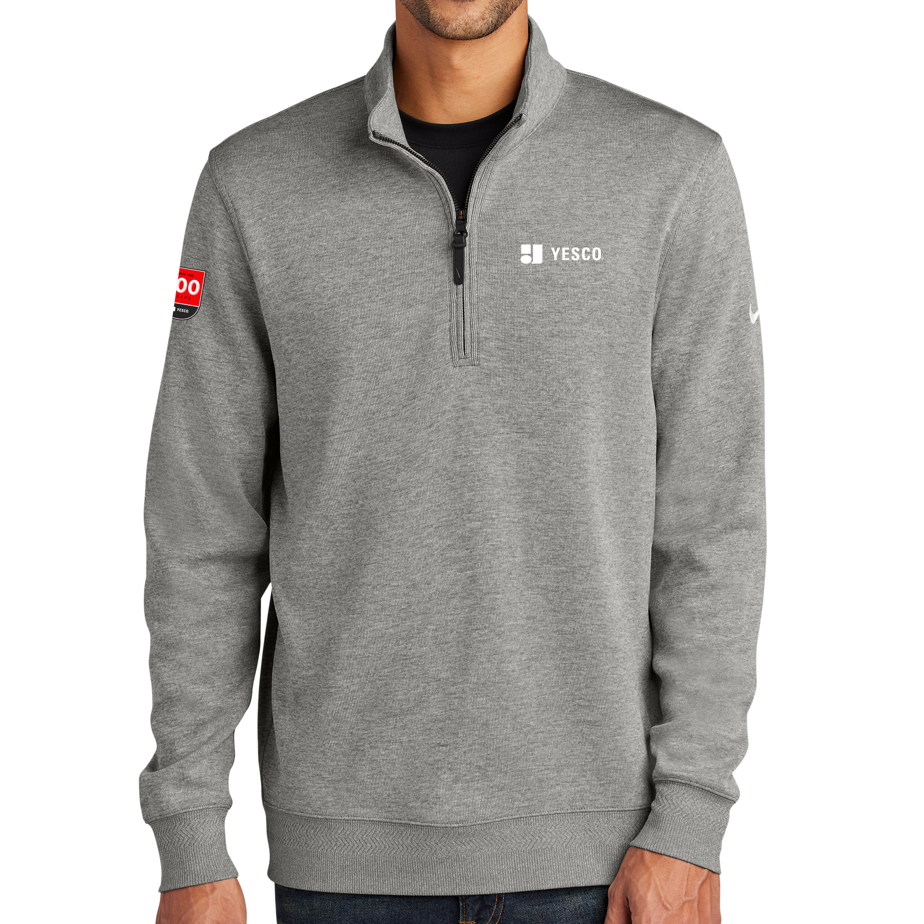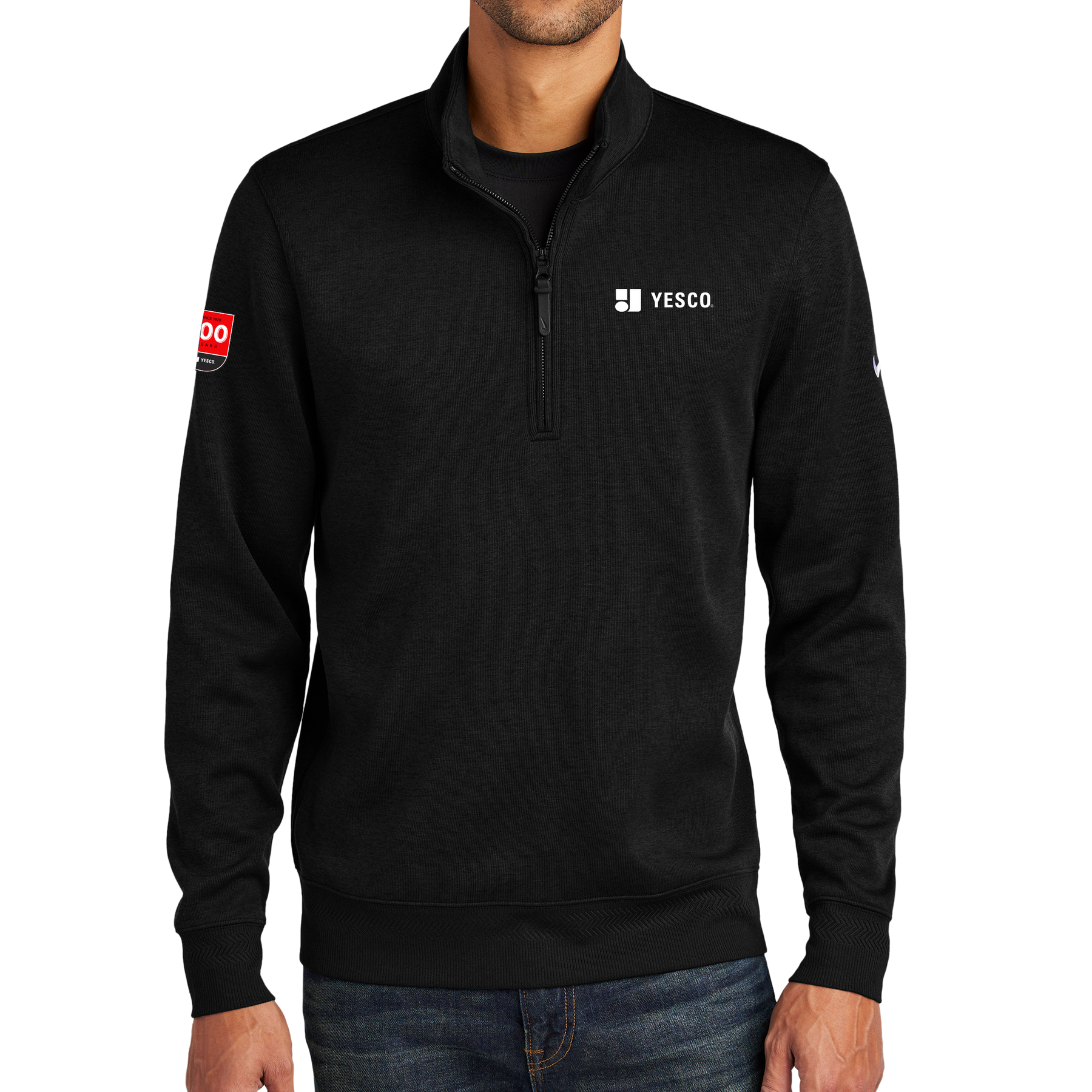 Made from at least 75% recycled polyester fabric, Nike has engineered a cover-up that looks and feels like your favorite sweater—but is ready to perform with Dri-FIT technology. Design details include a cadet collar, reverse coil zipper with faux leather zipper pull, rib knit cuffs and rib knit hem. A contrast Swoosh logo is embroidered on left sleeve and center back neck. Made of 8.3-ounce polyester Dri-FIT fabric.